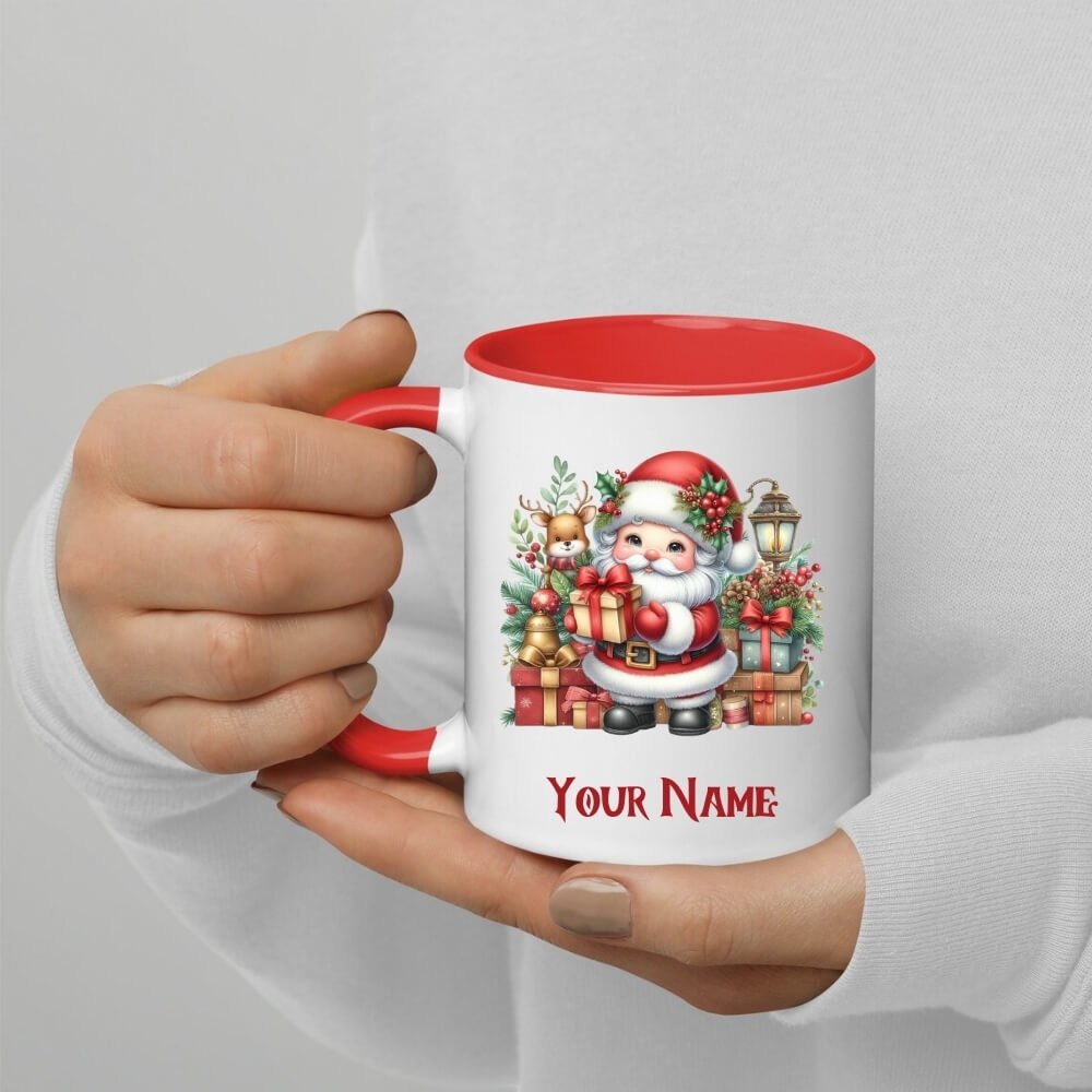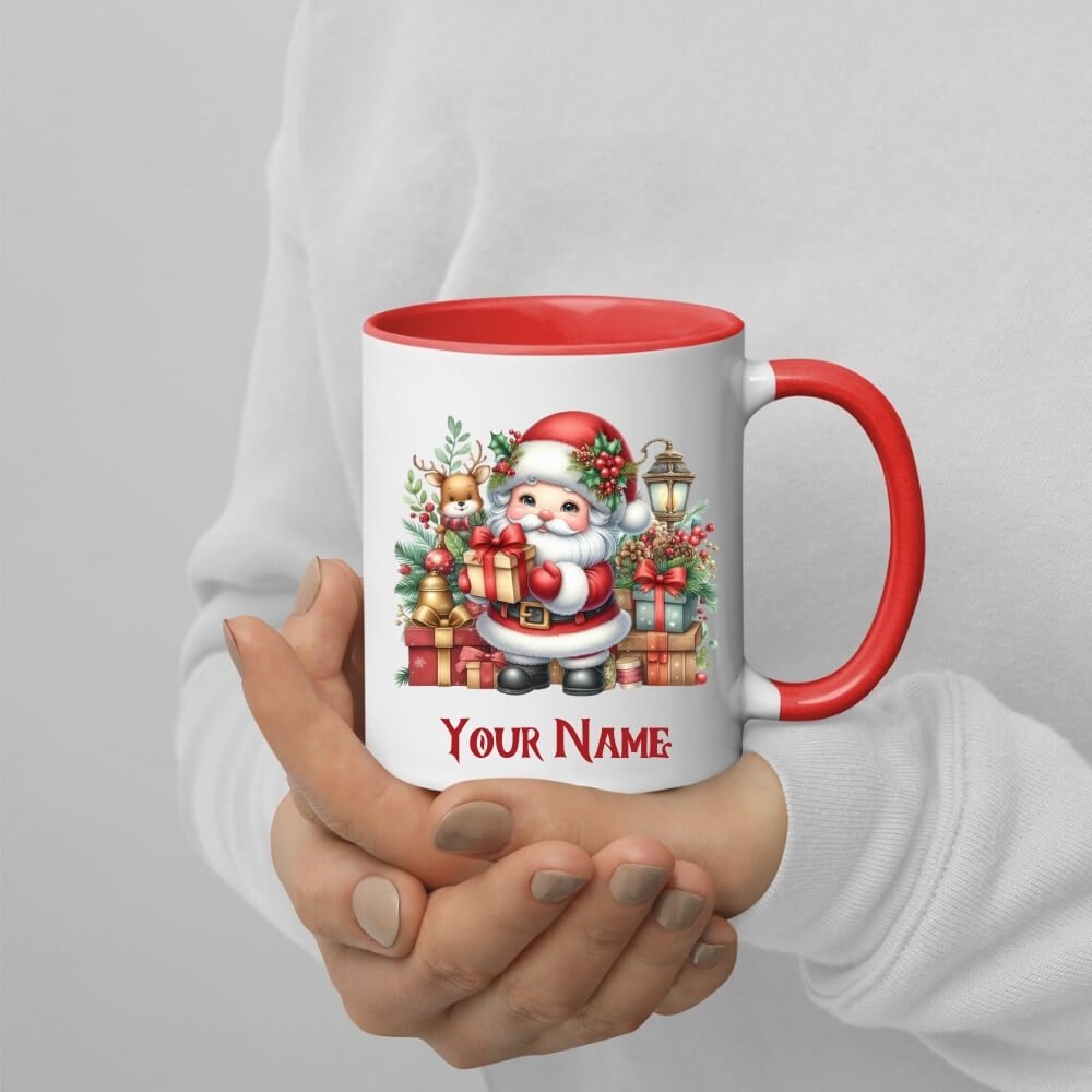 Santa Gift Customised Red Handle Coffee Mug